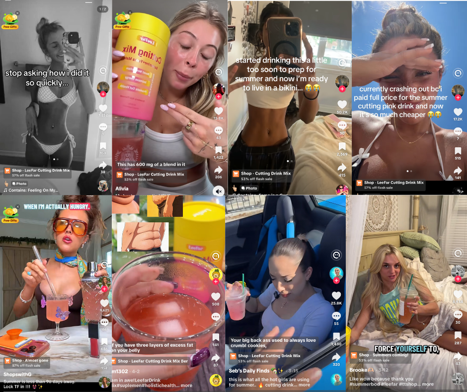 Examples of the dozens of videos promoting new cutting drink for appetite suppression.